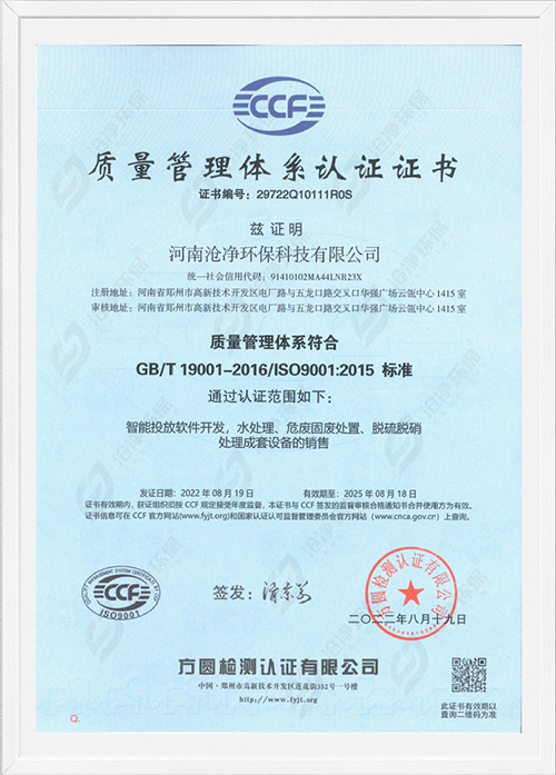 滄凈環(huán)保,是一家集科研、設(shè)計,工程施工、調(diào)試于一體的智能粉體投加系統(tǒng)-國家級高新技術(shù)企業(yè)【編號:GR202341000885】,旗下產(chǎn)品涵蓋水處理、危廢固廢處置,脫硫脫硝處理等領(lǐng)域,且通過ISO 9001:2015質(zhì)量管理體系認證。